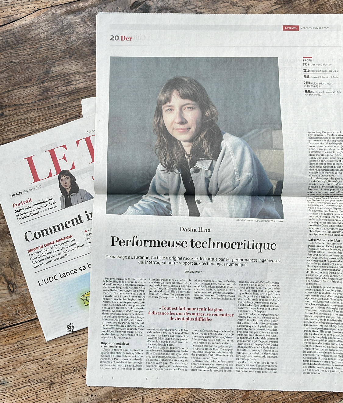 * Article: Dasha Ilina, minimalisme et humour au service de la technocritique in Le Temps (CH)
