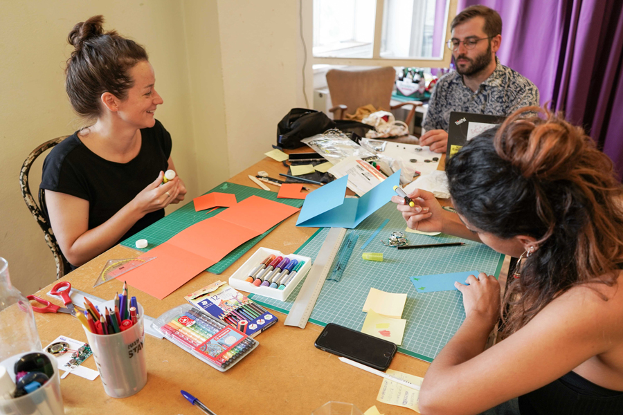 In the afternoon, the visitors were invited to create their own cards, just like the participants of the workshop did, or to just see the work developed during the residency.